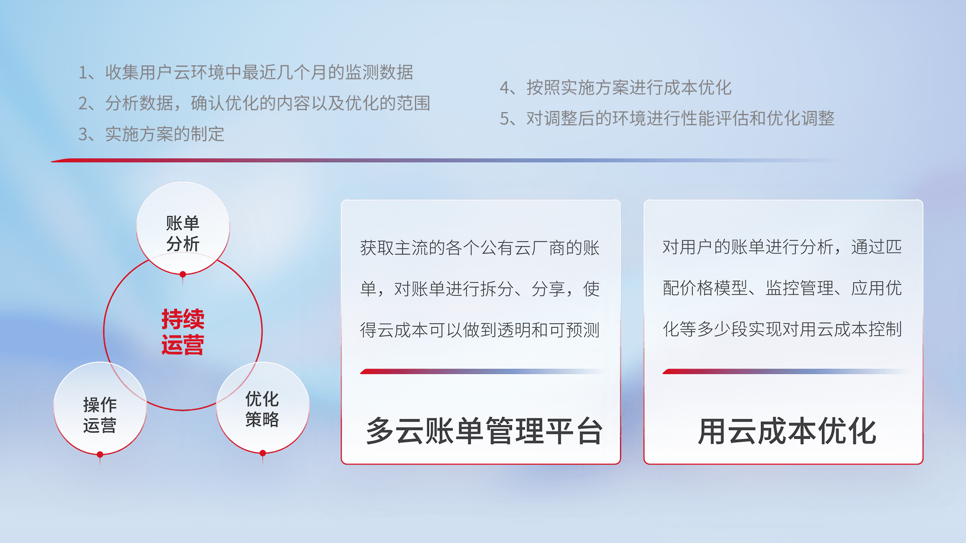 运用智能化工具分析云资源,,提供日常费用可视化工具,,,,自动账单拆分,,成本优化云上费用,,降本增效。。